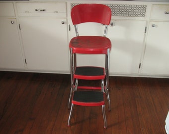 Vtg Antique 1940 S All Metal Cosco High Chair Step Stool With Stylaire On Step 440643289 from thumbs.worthpoint.com Chair , chair with height , chair for bedroom sale. Please check my other ads lots for sale. This red metal chair comprises a shaped rest rail and square seat attached to chromed tubular metal legs.